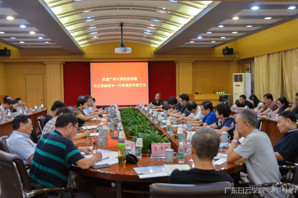 10月9日下午,广州大学松田学院副院长李江凌带领学校业务部门骨干一行19人来我校进行参观交流。我校副校长吴立平、副校长沈根生、及对口部门负责人热情接待了来宾。双方在国际会议厅进行座谈。