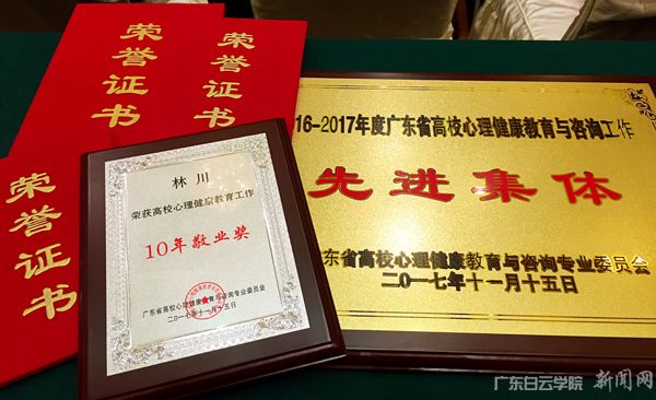 会上,高心委秘书长邱鸿钟做了专题工作报告,报告中总结了近两年我省高校在心康工作上的成果,尤其强调各高校在人员资金配备、课程设置以及各类活动竞赛的组织上做出的成绩,提出高校心康工作需要进一步提升,更加紧贴社会和生活实际,提升心康工作人员科研水平,不但要在理论上创新,更要在心理健康教育与咨询技术上有所创新;邱教授同时指出高校心康工作需在条理化、规范化和专业化上做出更大努力。广东省教育厅思政处田立科长为大会致欢迎词。会上还对近两年在大学生心理健康教育工作中表现突出的团体和个人进行了表彰,我校心理健康教育中心被评为“先进集体”,我校心理健康教育教学团队被评为“优秀教学团队”,赵晓晗老师被评为“先进个人”,刘航宇老师的论文《国内外心理韧性研究述评——概念、变量、相关工具及影响策略》被评为“优秀论文三等奖”,心理中心林川被评为“优秀心理中心主任”,同时获得“心理健康教育与咨询工作十年敬业奖”的表彰,至此,我校心理健康教育工作团队在本次学术年会设置的6个项目表彰中全部获奖!
