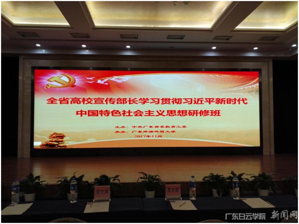11月14—17日,来自全省149所高校的宣传部长齐聚深圳,参加由省委教育工委主办,广东外语外贸大学承办的研修班,学习贯彻习近平新时代中国特色社会主义思想。省委教育工委副书记、省教育厅党组副书记、副厅长邢锋同志就全省高校宣传系统学习贯彻习近平新时代中国特色社会主义思想作了全面部署。