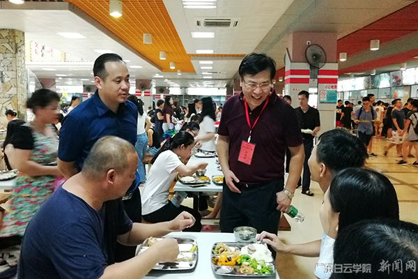 校长黄大乾与就餐的新生及其家长亲切交谈