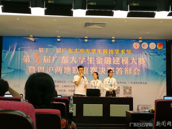 广东省第三届大学生金融建模大赛暨粤沪两地联谊赛是由共青团广东省委员会、广东省教育厅、广东省科学技术厅、广东省科学技术协会、广东省学生联合会主办,由广东金融学院、上海财经大学承办。本次活动有来自中山大学、华南理工大学、华南师范大学、上海财经大学、广东金融学院等知名的高校组成400多支队参加初赛。经过前期的初赛后,共有20支队伍入围决赛,我校参赛队伍作为本次活动中唯一一支民办高校进入决赛,并荣获了佳绩,这是我校领导积极组织学生参加各类专业竞赛的成果,致力于大学生课外知识竞赛类活动不断创优的基本体现,展现了我校应用经济学院师生的知识风采,是应用型人才培养成效显著的又一体现。(图文/应用经济学院何鹏飞、赖苏彬)