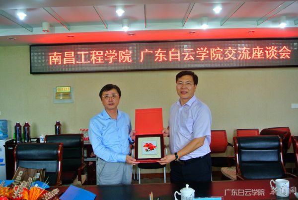 黄大乾校长(右)向南昌工程学院金志农校长(左)赠送礼品
