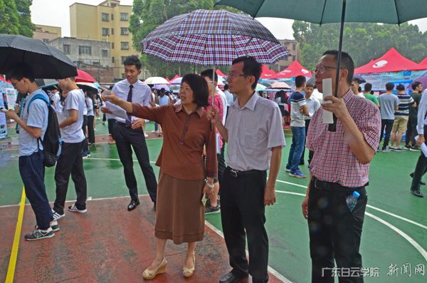 由广东省教育厅主办、广东白云学院承办的“2017年广东省高校毕业生供需见面会——应用型人才专场”于5月19日在我校西校区运动场举行。广东省大学生就业指导中心副主任冯伟雄莅临学校指导工作。我校党委副书记李纯英、就业指导中心主任虞迅到现场关心学生应聘情况。