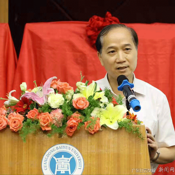 新当选的广东白云学院社科联主席、学校校长黄大乾致辞