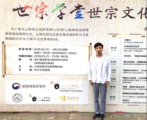 吴聪捷同学于2012年进入我校外国语学院韩语专业就读,因在校期间成绩优异、表现出色,于2015年被我校选派公费赴韩国湖南大学交换学习一年。在韩国交流学习期间,积极参与各项文体活动,充分展现自己的能力和才华。参加了韩国湖南大学举办的一年一度的外国留学生演讲比赛,凭借精彩的表现获得了金奖,并因此破格获得韩国湖南大学继续公费学习一年的机会。在2016年企业实践期间,他成为了韩国湖南大学杭州世宗学堂实习的唯一一名外国留学生。在实习期间,吴聪捷同学标准流利的口语和敬业的工作态度赢得了韩国世宗学堂负责人的认可。