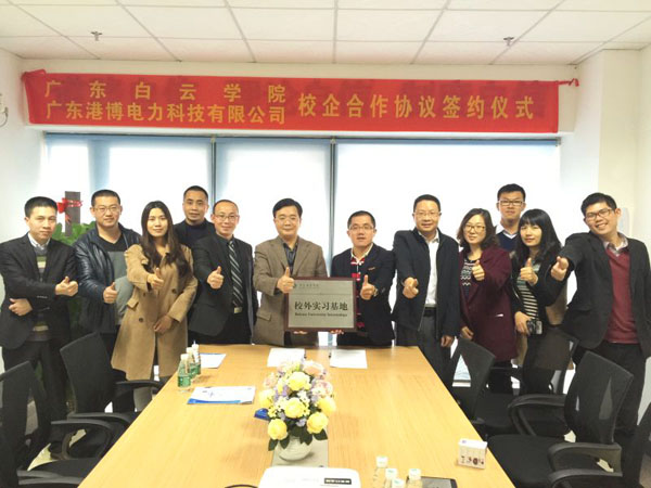 随后,李院长一行参观了佛山市采购协会会员单位--广东港博电力科技有限公司,公司副董事长谢明泉介绍了公司的发展情况及人才需求情况、并就合作事宜进行交流,谢副董事长希望与我校建立长期的合作关系,实现校企共赢。会谈后,李院长代表学校与广东港博电力科技有限公司签订了校企合作协议,并进行了实习基地的授牌仪式。