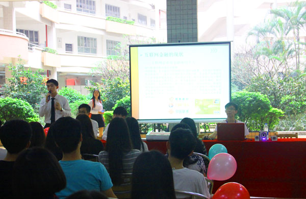 本次活动设置了互联网金融知识展示、PPT讲解、有奖互动问答等环节。活动通过互联网金融知识展示向同学们传达了互联网金融的具体含义、发展模式以及存在的风险等知识;专业讲解员通过PPT的演示,让同学们了解了互联网金融的具体操作方法和注意事项。推广会历时两个小时,现场气氛热烈。