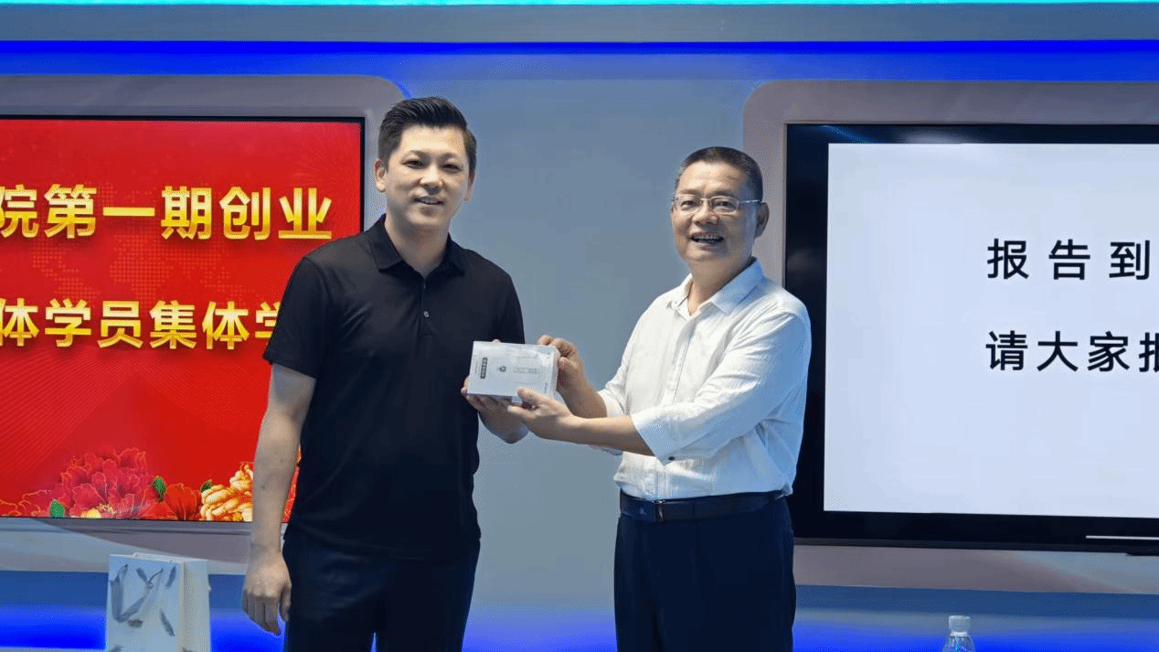 纪念品互赠环节进一步升温现场氛围。校友总会、佛山校友会、惠州校友会代表,向为本次活动提供大力支持的吴耿敏校友赠送定制纪念品;吴耿敏校友也暖心回赠公司精心筹备的纪念产品,一来一往间,尽显白云校友的深厚情谊与凝聚力。