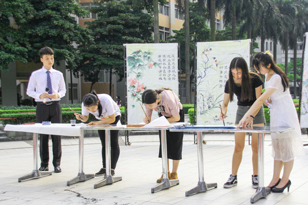 5月5号下午,由校团委主办的第七届“五·四”国学书画现场表演活动在孔子广场隆重举行。基础部主任张绪平、保卫处处长欧阳振勇出席活动进行指导。