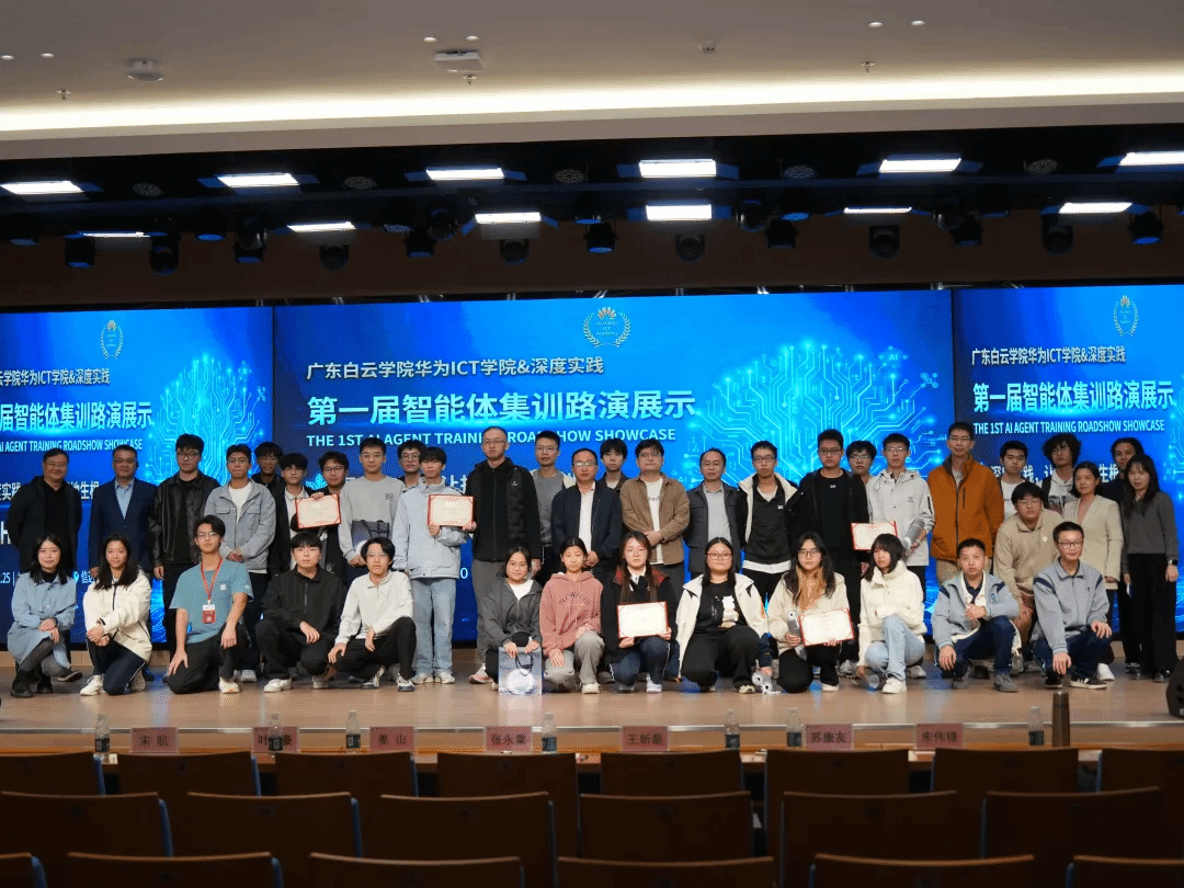 为深化校企协同育人机制,展示智能体技术集训成果,激发学生创新实践能力,2025年12月25日下午,广东白云学院华为 ICT 学院联合深度实践共同举办的第一届智能体开发成果路演活动在信达楼 9 楼成功举行。活动汇聚了11支参赛队伍同台竞技,为现场师生呈现了一场兼具技术深度与行业价值的专业交流盛宴。