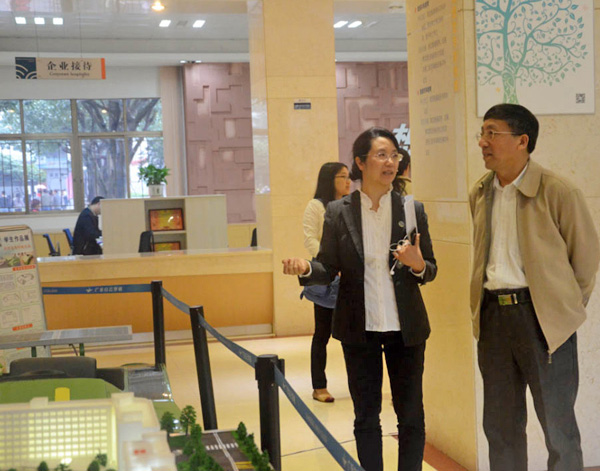 我校党委副书记李纯英(右二)陪同华南农业大学珠江学院党委副书记陈瑞平(左二)一行参观学生服务中心