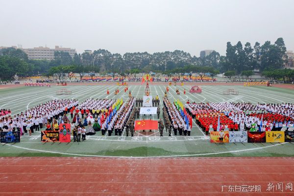 11月17日上午,广东白云学院以“努力拼搏 放飞梦想”为主题的第十八届校运会在西区运动场隆重开幕,开幕式由校体委主任、副校长刘跃南主持,校长黄大乾为运动会致开幕辞。开幕式上进行了气势磅礴、美轮美奂的文艺表演,由学生团队通过WIFI对开幕式在网上进行了现场直播。据统计,广东白云学院第十八届体育运动会开幕式的几个视频的网络点击率突破40000人次。