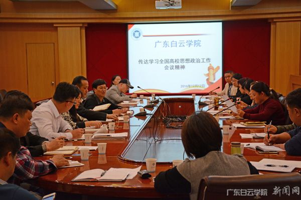 12月12日,我校召开专题会议学习贯彻全国高校思想政治工作会议精神,学校各职能处室负责人和各二级学院党总支书记参加会议,学生工作部部长陈峰主持会议,学校党委书记刘剑锋发表重要讲话。