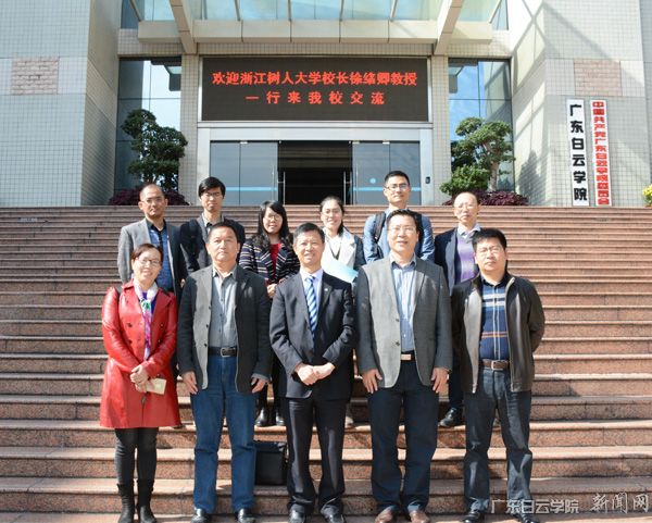 我校校长黄大乾(前排右二) 、副校长刘跃南(前排左二)等与浙江树人大学校长徐许卿(前排左三)一行合影留念